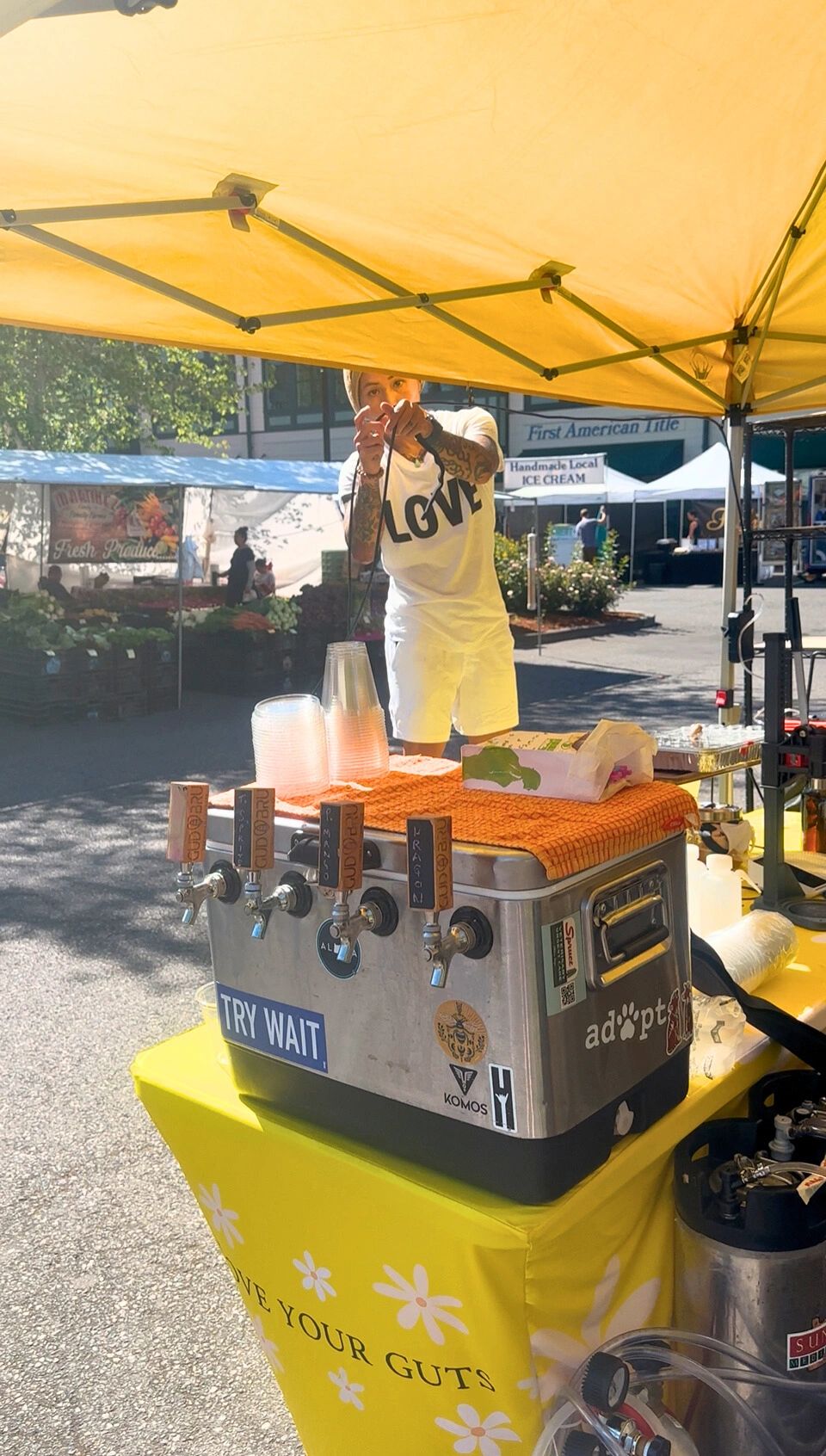 Aged Jun vinegar, raw honey, turmeric, ginger, horse radish, garlic, onion, habanero, jalapeños, cayenne, lemon, lime, cinnamon, coriander seeds, and peppercorns. Swirl don’t shake love.